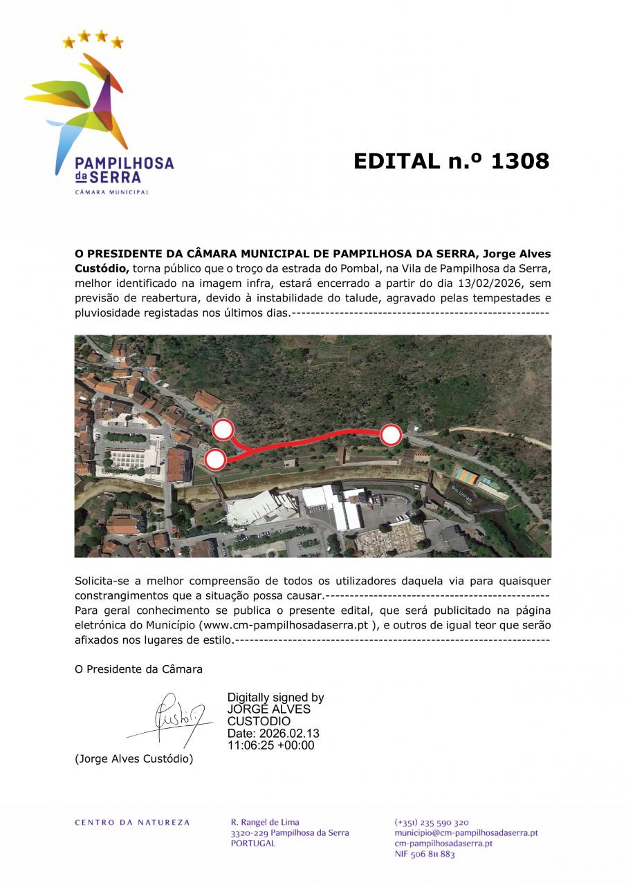 © 2026 Junta de Freguesia de Pampilhosa da Serra. Todos os direitos reservados | Termos e Condições | * Chamada para a rede fixa nacional.